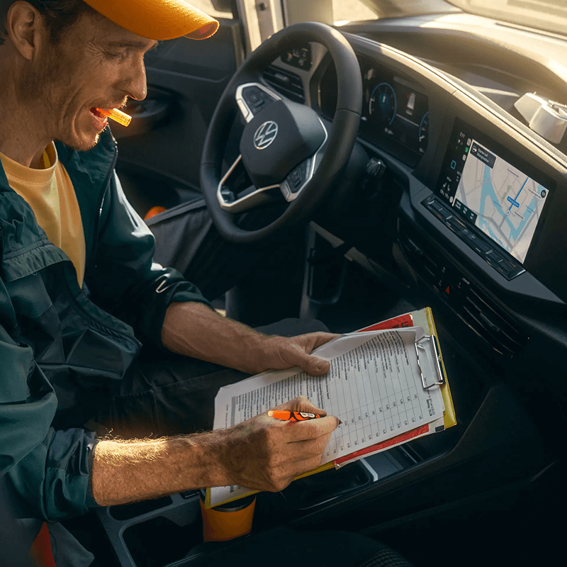 Nezaudējiet laiku ilgstošā meklēšanā jau tā steigas pilnā ikdienā: pārdomātie uzglabāšanas risinājumi nodrošina to, ka viss vajadzīgais vienmēr ir pa rokai. Pēc pieprasījuma pieejamie sēdekļi ergoComfort un papildaprīkojumā pieejamie vadītāja un blakussēdētāja elkoņu balsti ļauj komfortabli izbaudīt pat visgarākos maršrutus. Pēc pieprasījuma pieejamajam nolokāmajam blakussēdētāja sēdeklim ir jauns aizmugurējais panelis, ko var izmantot kā ērtu virsmu rakstīšanai, kā arī tam var viegli piekļūt no vadītāja sēdvietas. Caddy Cargo papildaprīkojumā pieejamie LED priekšējie lukturi ar jauno apgaismojumu sliktas redzamības apstākļos, kā arī papildu 230 V kontaktligzda — atvieglo braukšanu un strādāšanu vēl vairāk.